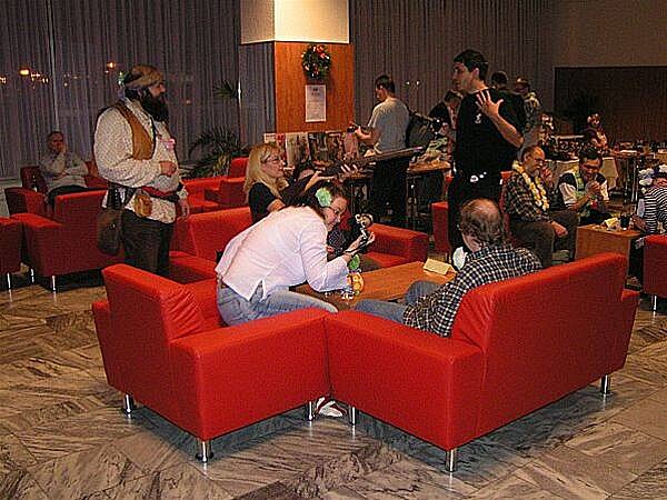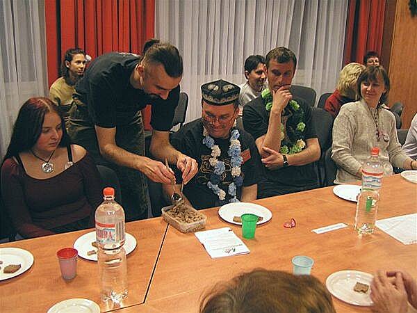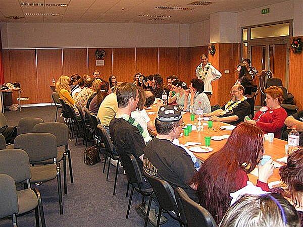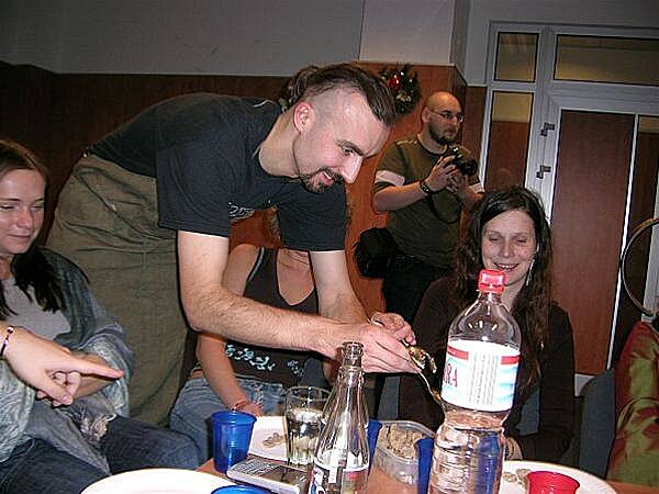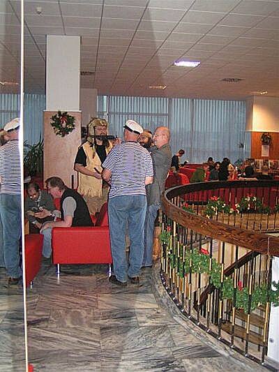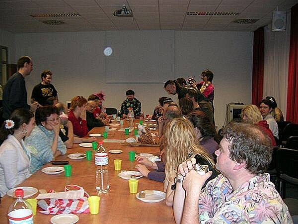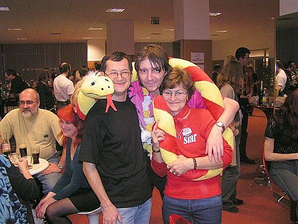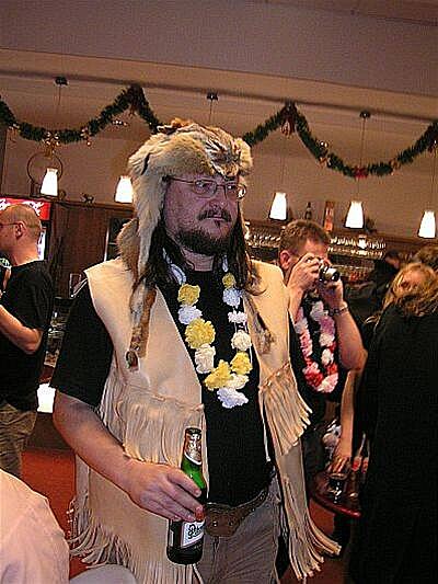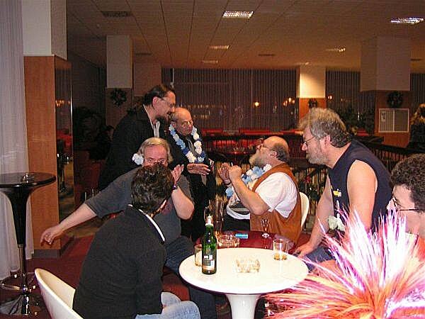 U baru bylo zivo stale. Odzadu zleva do prava: JWP, O. Herec, J. Kanturek + hoste u stolu