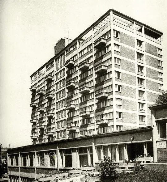 Kolektivní dům ve Zlíně postavený v 50. letech 20. století. Pokus o komunální kolektivismus v podobě nových forem bydlení.