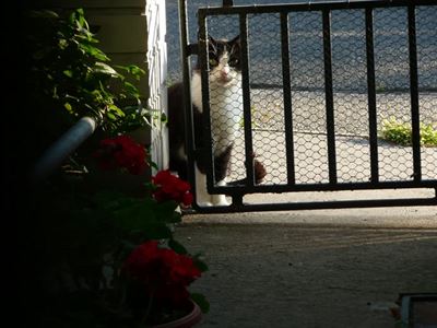 Tento černobíl, jak mu říkáme, má sice majitele, ale z kočičího hlediska na baterky. Dívala jsem se na první fotky a už sem dochází pravidelně k večeru přes 10 let.