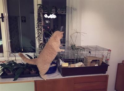 S ostříhanými stonky jsem si šla šplhnout u morčete a postavila jsem mu je skrz mřížku do klece.