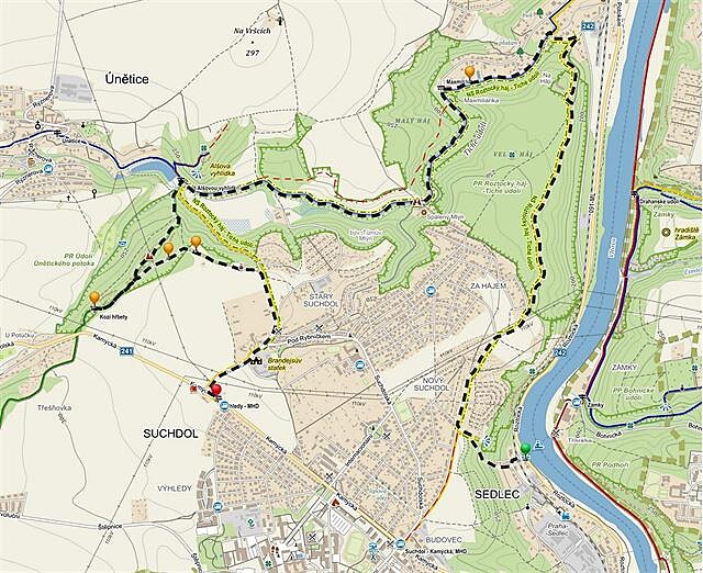 1 Mapa vycházky - červeně jsou naznačeny další možné trasy