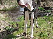 Po cyklostezce jsme musely kráčet spojeny vodítkem - to se Betce moc nelíbilo, ale nedalo se nic dělat. Potěšila mě, že ji nechávalo klidnou stádo pasoucích se krav, koní (s úžasným kolenatým koňátkem) i traktor s bránami, který pracoval kousek od naší cesty (to by Aronka těžce nesla - ta hlučnou techniku nenáviděla a snažila se ji lovit)