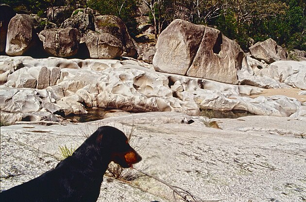 Zase nám došlo maso v mrazáku a tak jsme se s Waldemarem vydali ke kamarádovi Lupenovi na farmu, nějaké to maso opatřit. Děje se to tak, že se střelí pár klokanů, co mu tam užírají pastvu kravičkám, a pak zase máme všichni na nějakou dobu o maso postaráno. Navíc to je pěkné libové skoro jako srnčí. Klokan na smetaně je paráda a ta polívka z ocasu (klokaního), to je lidi síla. Waldu jsem nikdy nemusel učit lovit, měl to vrozené, na rozdíl ode mě. To psisko, když jsem je poprvé vzal na lov, samo od sebe šlo u nohy a stalo se neviditelným. I při střílení seděl a nebo ležel a ani nedutal a vyrazil vždy, až jsem mu řekl. To se pak ukázal, jakej je dravec. Pelášil ke klokanovi, skočil mu prvně po krku a pak začal chlemstat teplou krev. Byl-li klokan střelen dobře a docela mrtvej, tak to bylo v pohodě.