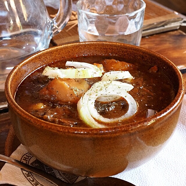 Následujících 5 kilometrů soustavně stoupáme až na Inoveckou chatu, kde se uvelebíme na obídek. Jelení guláš nezahuštěný moukou nemůžu nechat na lístku bez povšimnutí.