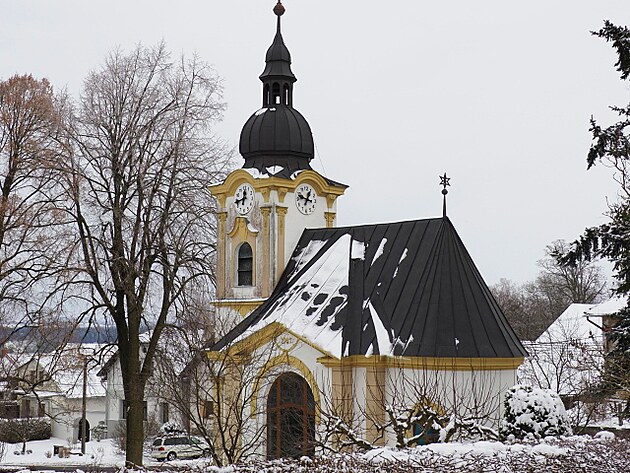 Jen poštolka, která sedí na špici zasněženého stromu před kapličkou, má výhled o něco lepší než my.
