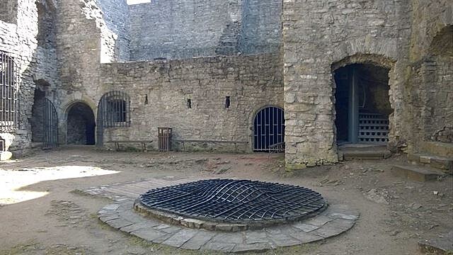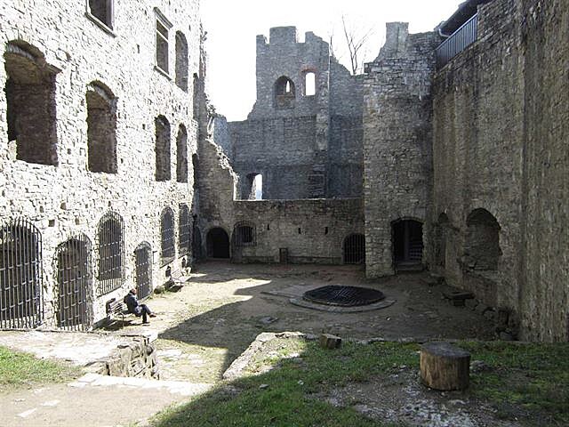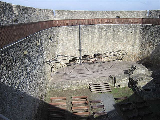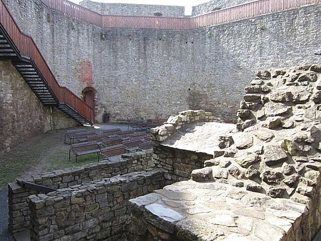 12 Napravo bílá věž, kde byly byty úředníků a hradní kuchyně