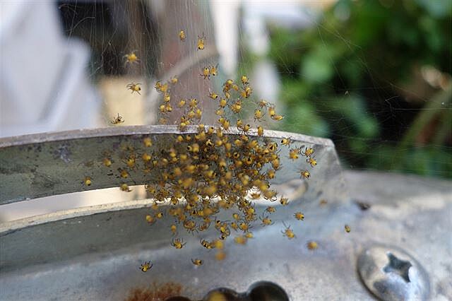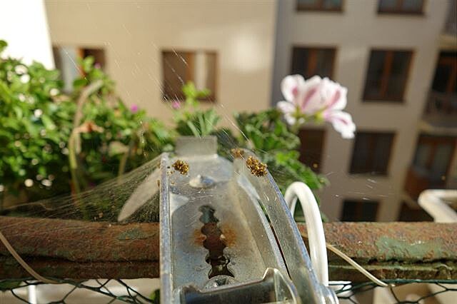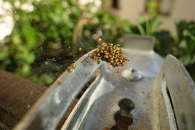 Pavoučci na balkoně - spousta jemných vláken. Mšice, těšte se!
